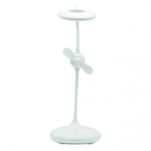 Artikel-Nr: INP58-8116004Akku-Lampe mit Ventilator FRESH LIGHT: 360° flexiblel schwenkbarer Leuchtarm mit 16 LED, An und Aus per Fingertipp, Dimmfunktion durch lange Berührung, integrierter Ventilator mit separatem Berührungssensor, inkl. USB-Ladekabel (Länge ca. 100 cm), flexibel einsetzbar dank integriertem Lithium-Akku mit 1.200 mAh, 4 rutschhemmende Füße auf der Unterseite, in Box