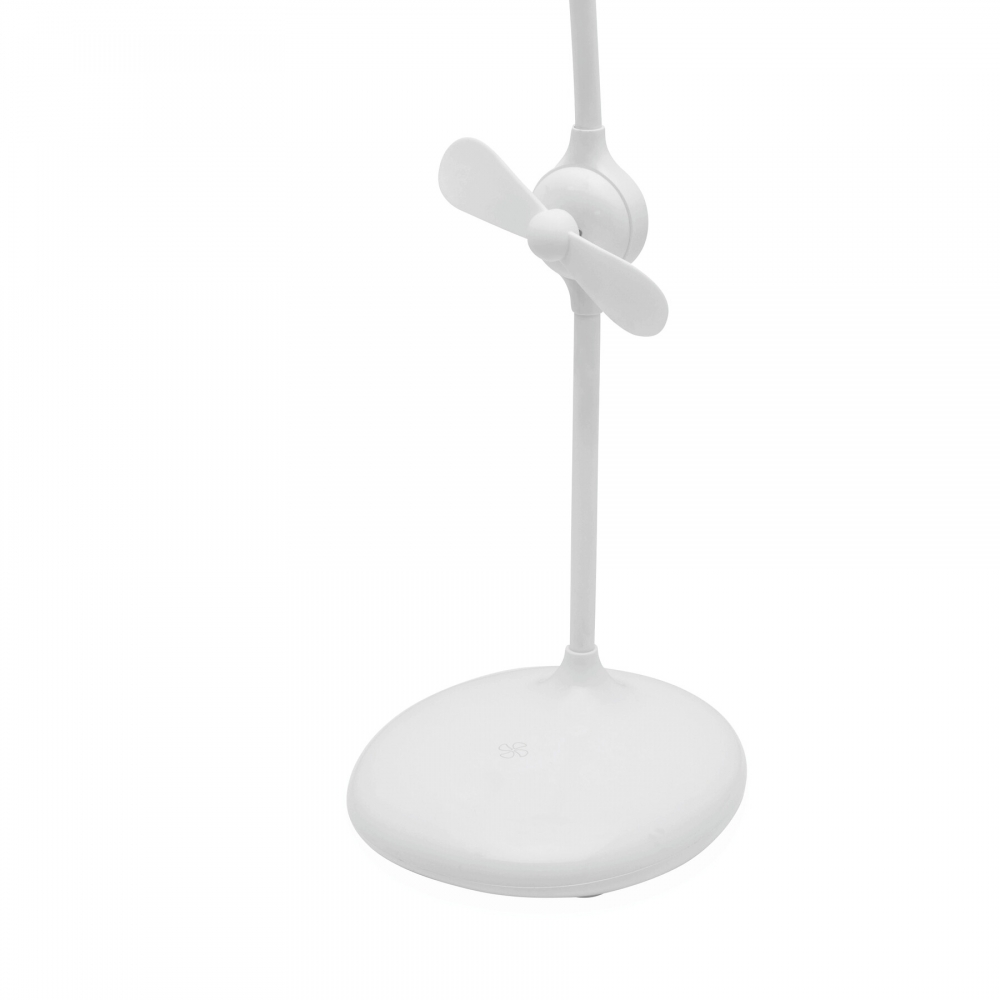 Artikel-Nr: INP58-8116004Akku-Lampe mit Ventilator FRESH LIGHT: 360° flexiblel schwenkbarer Leuchtarm mit 16 LED, An und Aus per Fingertipp, Dimmfunktion durch lange Berührung, integrierter Ventilator mit separatem Berührungssensor, inkl. USB-Ladekabel (Länge ca. 100 cm), flexibel einsetzbar dank integriertem Lithium-Akku mit 1.200 mAh, 4 rutschhemmende Füße auf der Unterseite, in Box