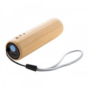 Artikel-Nr: AND864055Taschenlampe aus Bambus mit eingebautem USB-Akku (320 mAh), 1 LED-Leuchte und Trageriemen. Mit 3 Leuchtmodi. Inkl. USB-Ladekabel.