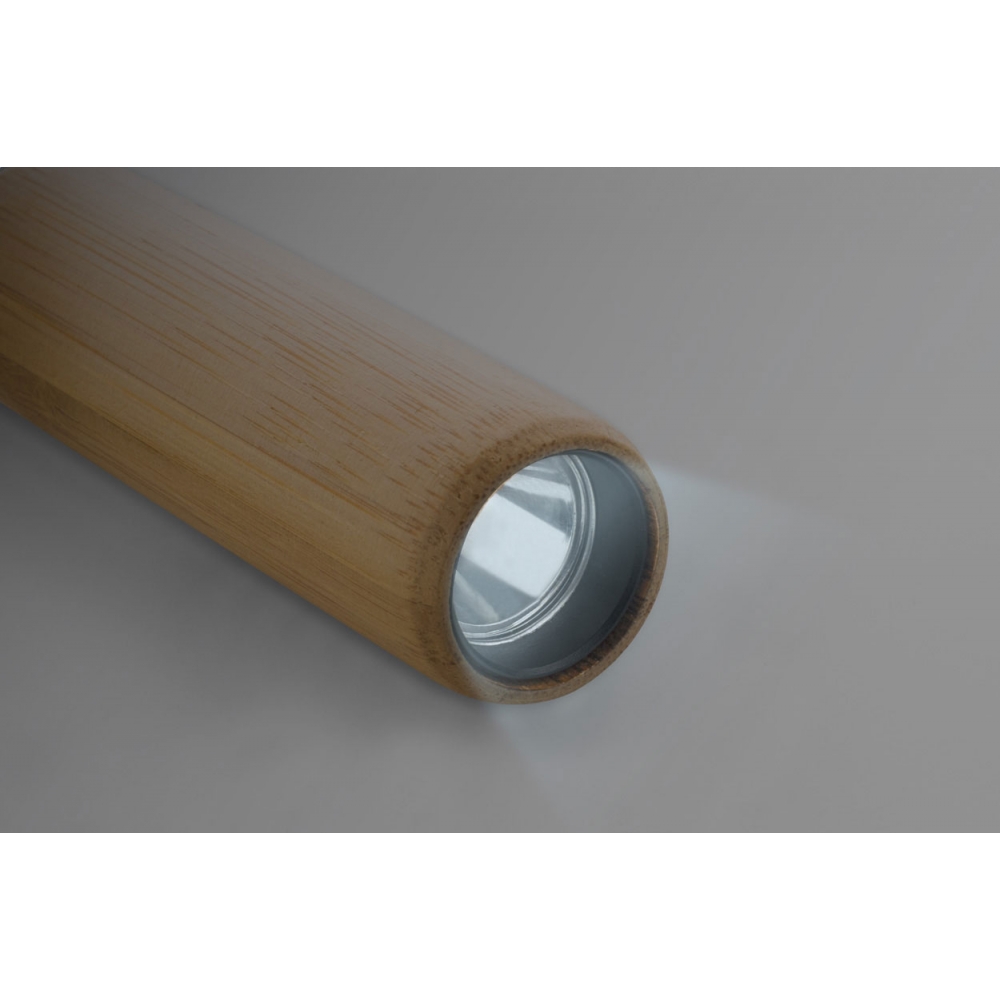 Artikel-Nr: AND864055Taschenlampe aus Bambus mit eingebautem USB-Akku (320 mAh), 1 LED-Leuchte und Trageriemen. Mit 3 Leuchtmodi. Inkl. USB-Ladekabel.