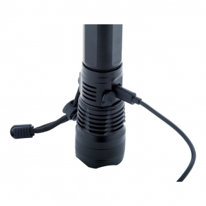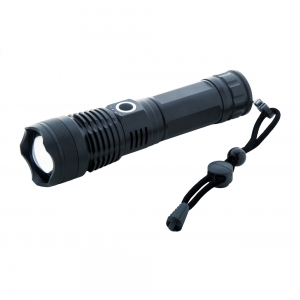 Artikel-Nr: AND808127Aluminium-Taschenlampe mit integriertem USB-Akku (1500 mAh) und Tragegurt. Mit zoombarem Hochleistungs-COB-Licht. Mit hohen, mittleren, niedrigen und blinkenden Lichtmodi. Inkl. USB-Ladekabel.
