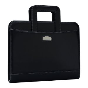 Artikel-Nr: INP56-1103179Aktenmappe NOBLESSE RING im DIN-A4-Format: umlaufender Reißverschluss, 4-Ringlochung, Taschenrechner, Schreibblock, Schlaufe für ein Schreibgerät, diverse Einsteckfächer, mit versenkbaren Tragegriffen, weißen Schmuck- und Kantennähten, aus hochwertigem Kunstleder mit Metallplättchen für Ihr Logo