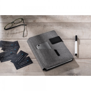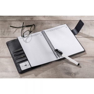 Artikel-Nr: ARD07165Die aus Leinen gefertigte externe Außenbeschichtung der Aktentasche CARLIS verfügt über zwei Taschen für Telefon und einen USB-Arbeitsspeicher. Im Inneren gibt es ein austauschbares DIN A5 Notizbuch (linierte 50 Seiten), große Tasche mit Reißverschluss, Platz für Kugelschreiber und 4 kleine Taschen, darunter 1 mit einem Fenster. Die Aktentasche wird mit einem Magnetverschluss verschlossen. Die im Verschluss platzierte Metallplatte ermöglicht die Anfertigung einer effektvollen Gravur, die das elegante Aussehen der Aktentasche ganz bestimmt hervorheben wird.