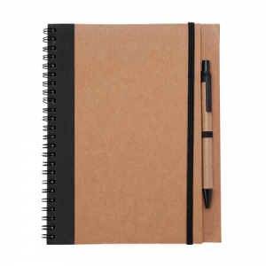 Artikel-Nr: PRM850609_15Spiralring-Notizbuch mit Hardcover aus recyceltem Karton. Inklusive passendem Stift mit blauer Tinte. 60 Blatt.