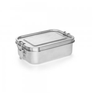 Artikel-Nr: PST94277-127Robuste luftdichte Box aus (90% recyceltem) Edelstahl mit Sicherheitsschnallen an der Seite. Fassungsvermögen bis zu 750 mL. Wird in einem Geschenkkarton aus Kraftpapier geliefert. 170 x 119 x 57 mm