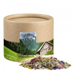 Artikel-Nr: FNM01826Kraftpapierdose Mini aus Papier. Werbeanbringung als Etikett in 4c individuell bedruckbar. Zutaten Alpenkräuter Salz: Alpenbergsalz, Schnittlauch, Petersilie, Karotten, Zwiebeln, Paprika, Dill, Pastinake, Liebstöckel, Ringelblume, Rosenblüten, Kornblumenblütenblätter.
