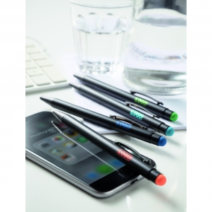 Artikel-Nr: INP56-1101762Alu-Kugelschreiber BLACK BEAUTY, mit Großraummine, Touchscreen-Spitze zur Bedienung von Smartphones und Tablets, matte Oberfläche mit farbiger Unterlegung für eine Gravur passend zur Farbe der Touchscreen-Spitze, blauschreibend