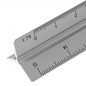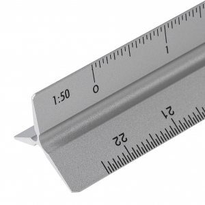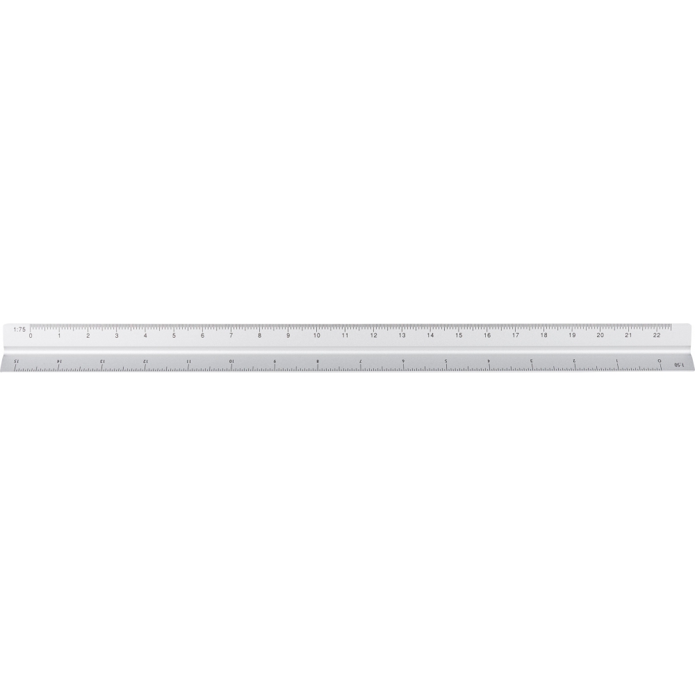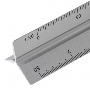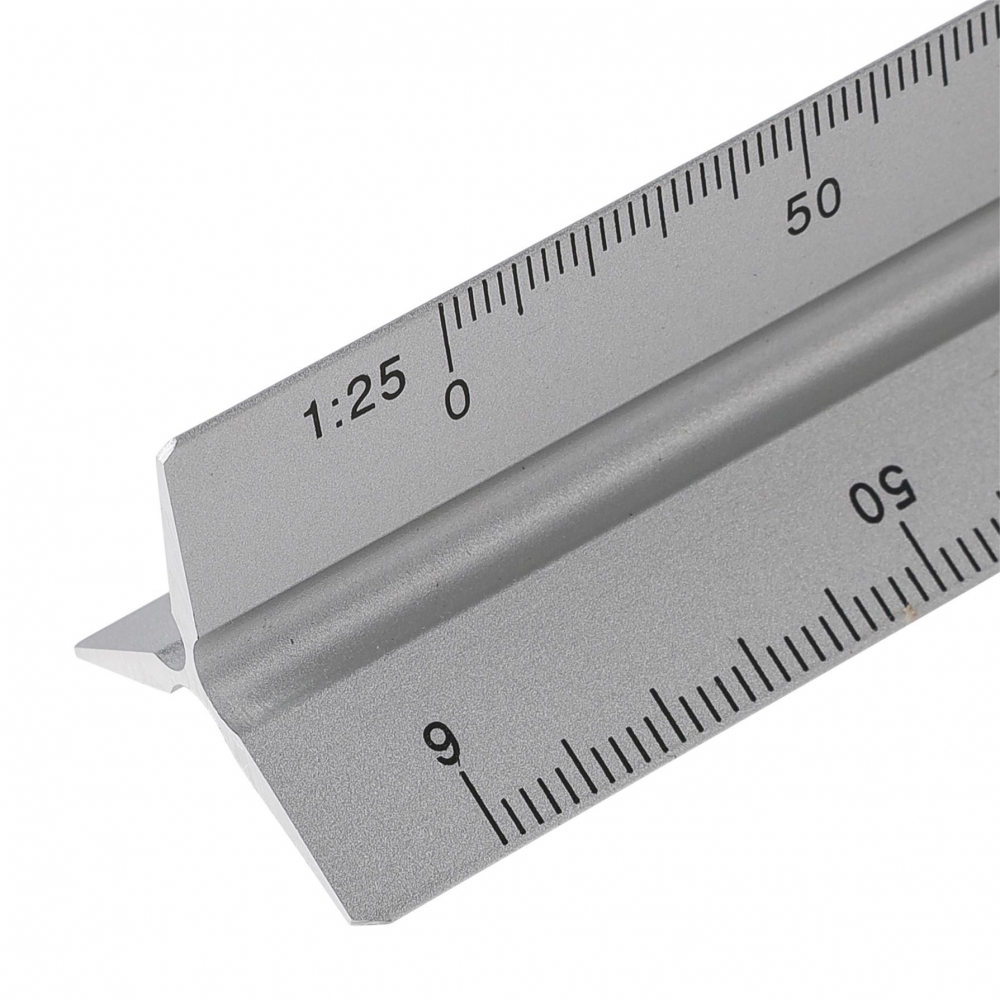 Artikel-Nr: GIV1349356032Aluminium-Dreiecklineal mit mehreren Maßskalen (1:20, 1:25, 1:50, 1:75 und 1:100) und einer Seite ohne Skala zum Gravieren. Mit Zentimeter- und Zollmarkierungen. Es ist einzeln in einem braunen Karton verpackt.
