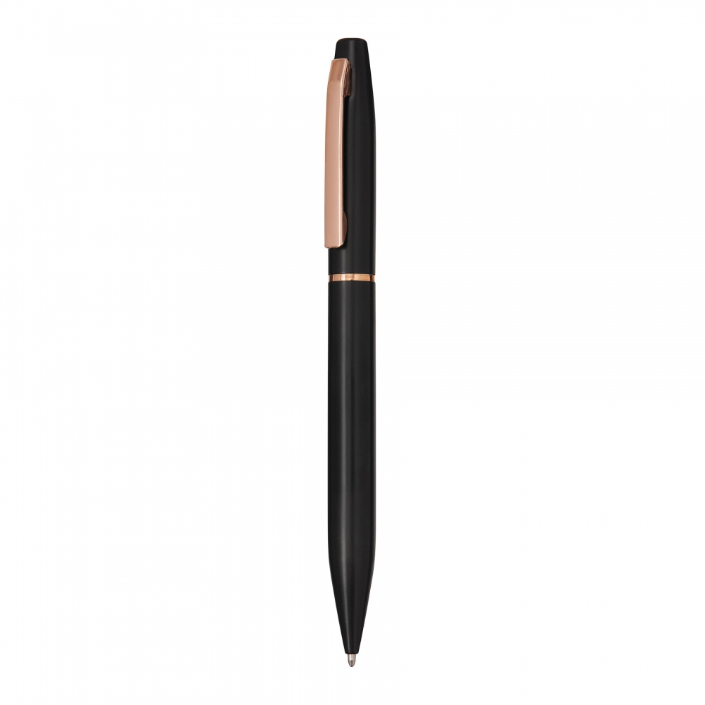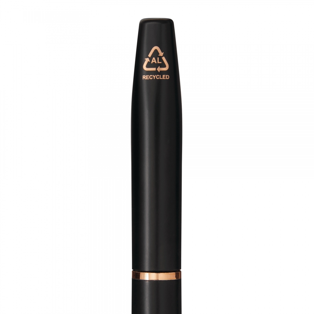 Artikel-Nr: INP56-1102322Aluminium-Kugelschreiber EXPRESSIVE: mit mattem Schaft aus recyceltem Aluminium, Mittelring und Clip in Kupferfarbe, Chromunterlegung für eine glänzende Gravur in kupfer, Drehmechanismus, blauschreibend, in Box
