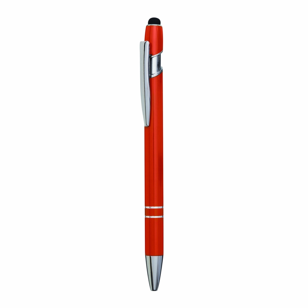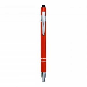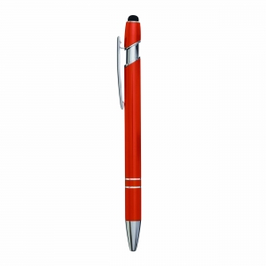 Artikel-Nr: INP56-1102218Aluminium-Kugelschreiber MERCHANT: mit glänzendem Aluminium-Schaft, Druckmechanismus, am Schaftende mit Touchscreen-Spitze, blauschreibend