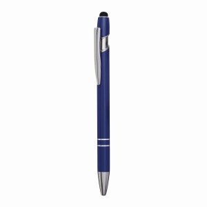 Artikel-Nr: INP56-1102215Aluminium-Kugelschreiber MERCHANT: mit glänzendem Aluminium-Schaft, Druckmechanismus, am Schaftende mit Touchscreen-Spitze, blauschreibend