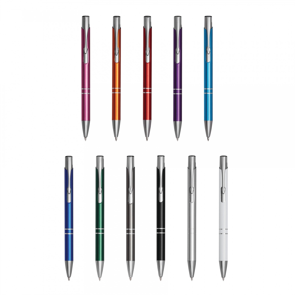 Artikel-Nr: INP56-1102197Aluminium-Kugelschreiber TUCSON: mit glänzendem Aluminium-Schaft, Druckmechanismus, Großraummine, blauschreibend