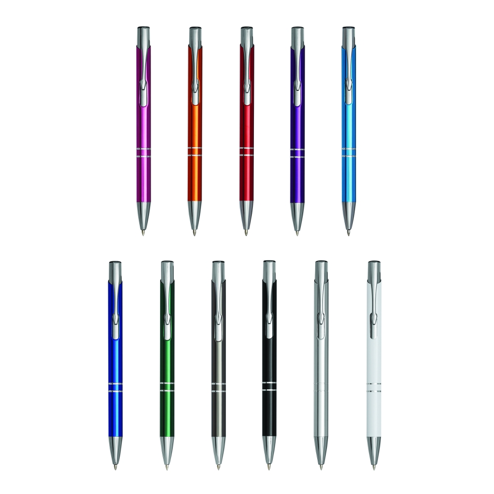 Artikel-Nr: INP56-1102197Aluminium-Kugelschreiber TUCSON: mit glänzendem Aluminium-Schaft, Druckmechanismus, Großraummine, blauschreibend