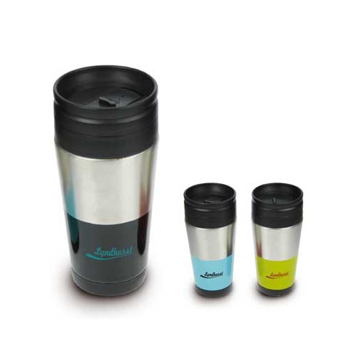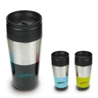 Artikel-Nr: W57590538Aluminium-Thermobecher mit Kunststoffteilen und buntem Farbband. Das ideale Kundengeschenk für Ihre autofahrende Kundschaft.