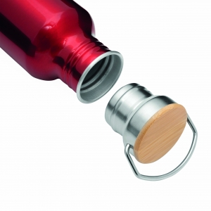 Artikel-Nr: INP56-0603154Aluminium Trinkflasche ECO TRANSIT: einwandig, Bambus-Deckel mit sicherem Schraubverschluss und Tragegriff, Füllmenge: ca. 550 ml