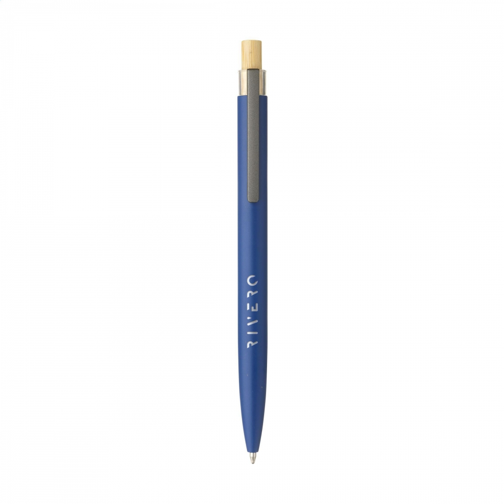 Artikel-Nr: CLP261052-536128Modischer, blauschreibender Kugelschreiber mit einem Gehäuse aus 100% recyceltem Aluminium mit mattem Finish. Der Druckknopf aus Bambus ist mit einem transparenten Akzent versehen. Das Gehäuse besteht aus einem Stück und ist standardmäßig mit dem Logo 'Recycled Aluminium' bedruckt. GRS-zertifiziert.Durch die Verwendung von recyceltem Aluminium werden bei der Herstellung dieses Produkts weniger neue Rohstoffe verwendet. Das bedeutet weniger Energieverbrauch und weniger Wasserverbrauch.