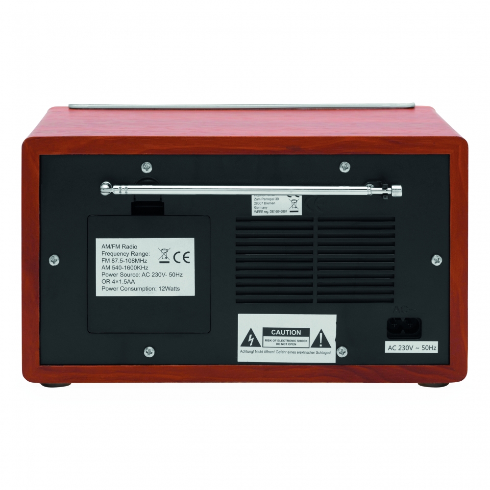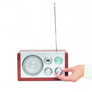 Artikel-Nr: INP56-0406227AM / FM-Radio CLASSIC: in edler Holz-Optik, Frequenzanzeige mit blauer Hintergrundbeleuchtung, mit Netzstecker, batteriebetrieben (4xAA Batterien nicht enthalten), in Box