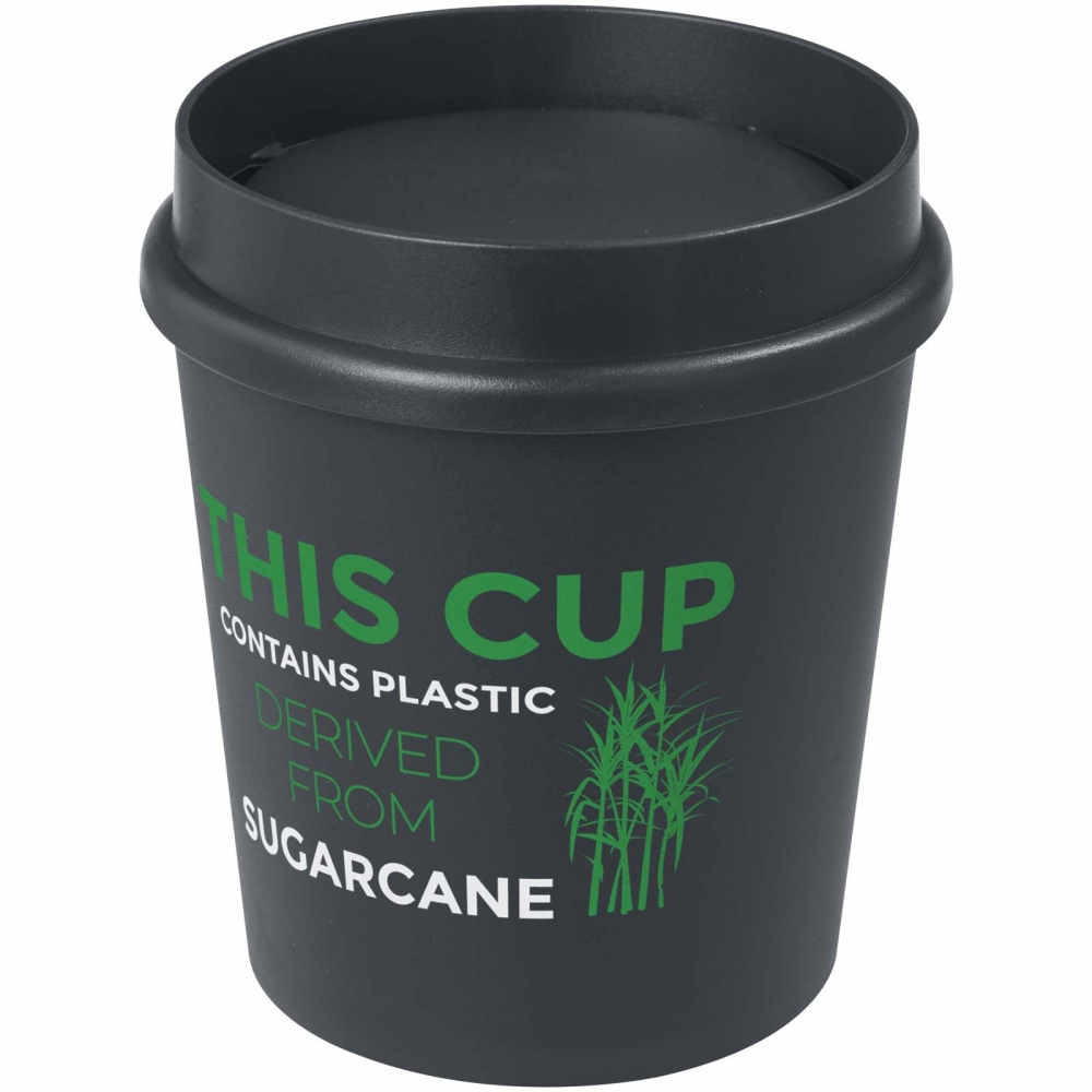 Artikel-Nr: CPO21027983Americano® Switch Renew Einwandiger Becher mit einem Fassungsvermögen von 200 ml. Der innovative 360°-Deckel ermöglicht es Ihnen, von jeder Seite des Bechers zu trinken, und verstärkt das Aroma Ihres gewählten Getränks. Der Becher enthält 25 % Kunststoff, der aus Zuckerrohr gewonnen wird, wodurch der Bedarf an neuem Kunststoff reduziert wird. Der Deckel und der Becher sind silikonfrei, spülmaschinenfest, mikrowellengeeignet und BPA-frei. Als Teil der Americano® Switch-Familie können Sie Ihren Becher durch Hinzufügen eines Deckels und eines Griffs nach Belieben individuell gestalten. Hergestellt in UK. Verpackt in einem recycelten PE-Kunststoffbeutel.