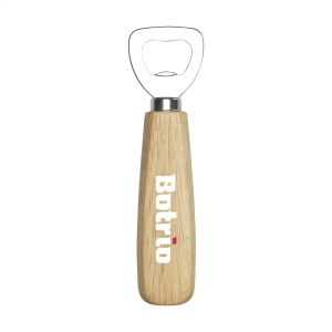 Flaschenöffner mit einem Griff aus Buchenholz. Liegt gut in der Hand.