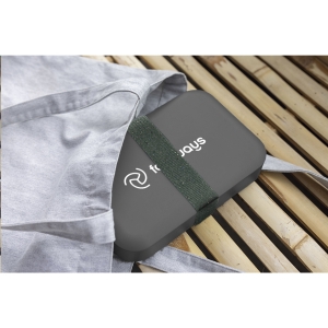 Artikel-Nr: CLPW47493Lunchbox von der Marke Amuse. Hergestellt aus 100% recyceltem PP-Kunststoff (Post-Consumer). Das Gummiband zum Verschließen besteht zu 33% aus upgecyceltem Denim und zu 66% aus Tencel, einem Stoff, der aus natürlicher Holzzellulose hergestellt wird, und ist somit recycelbar. Die Lunchbox ist in der Höhe verstellbar. Lebensmittelecht. Spülmaschinengeeignet. Um den Aufdruck zu erhalten, wird Waschen von Hand empfohlen. Made in Europe. Bei der Herstellung von verschiedenen lebensmittelechten Küchenprodukten fallen häufig Reste an. Anstatt sie wegzuwerfen, werden diese Kunststoffabfälle gesammelt und zu Granulat verarbeitet. Aus diesen Granulaten werden neue Produkte hergestellt. Optional: Einzeln in einem Kraftkarton geliefert.