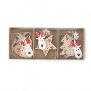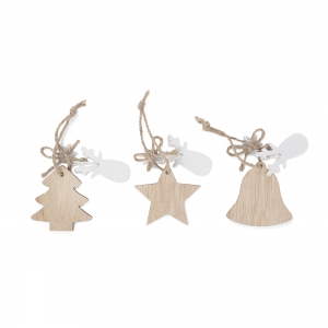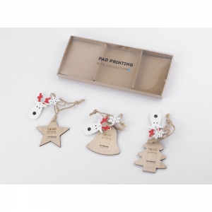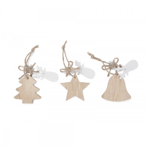 Artikel-Nr: ARD08133Das FERI Set besteht aus 3 Stück Holzanhängern mit verschiedenen Mustern: Stern, Weihnachtsbaum, Glocke. Die Anhänger aus Holz passen perfekt in den ökologischen Trend und passen zu fast jedem Interieur.