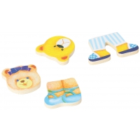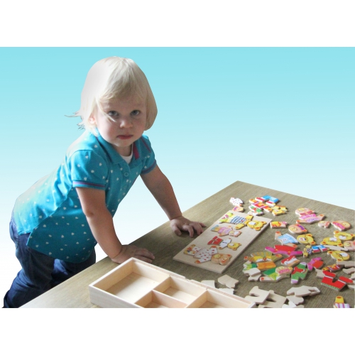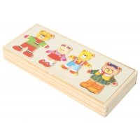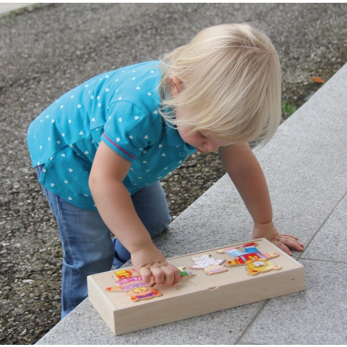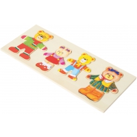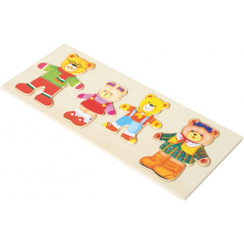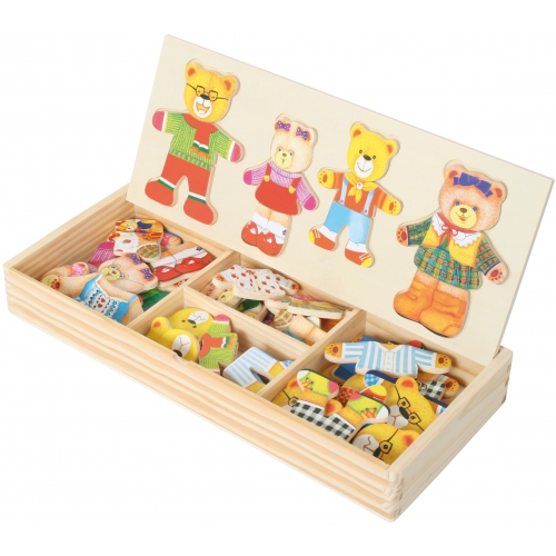 Artikel-Nr: 375101817Mama, Papa, Brüderchen und Schwesterchen jeweils in sechsfacher Ausführung in Holzbox. In den bärigen Vertiefungen des Deckels kann der kleine Puzzler Familie Bär in vielen verschiedenen Outfits präsentieren. Achtung! Nicht geeignet für Kinder unter 36 Monaten.