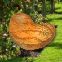 Ein dekorativer Hingucker: In dieser ansprechenden, naturbelassenen Herzform-Holzschale finden Obst, Gebäck, Nüsse, oder andere Dinge problemlos Platz. Größe: 6x5,5 cm