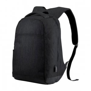 Artikel-Nr: AND721326-10Anti-Diebstahl Rucksack mit mehreren Fächern, gepolstertem Laptop- (15") und Tabletfach (12"), gepolstertem Rücken und Schultergurten, Trolleygurt und eingebauter USB-Verbindung für Powerbanks. Material: 300D Polyester.
