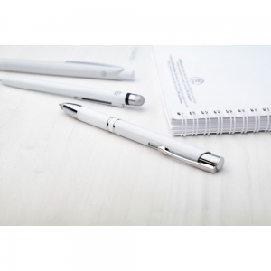 Artikel-Nr: AND721809-01Antibakterieller Kugelschreiber mit Touchpen aus Kunststoff, blauschreibend. ISO 22196 konform.