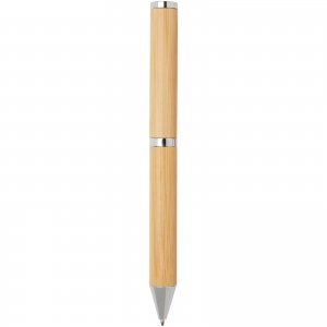 Artikel-Nr: CPO10783306Präsentset bestehend aus einem Kugelschreiber und einem Tintenroller mit Stifthülsen aus Bambus. Bambus ist ein erneuerbarer Rohstoff und eine nachhaltigere Wahl für die Herstellung von Stiften. Alle anderen Bestandteile dieses Stiftsets sind aus glänzend verchromtem, recyceltem Messing gefertigt. Durch das Recycling von Messing wird der Bedarf an der Gewinnung und Veredelung neuer Rohstoffe verringert, was die natürlichen Ressourcen schont. Mit dem Kauf eines Stiftsets mit Stifthülsen aus Bambus und recyceltem Messing unterstützen Sie nachhaltige Beschaffungs- und Recyclingpraktiken. Diese Kombination ermöglicht es Ihnen, Schreibgeräte zu verwenden, die zugleich stilvoll und umweltbewusst sind. Geliefert in einer Schachtel aus Kraftpapier mit gelber Seidenschleife. Tintenfarbe des Stifts: Schwarz. Box Größe: 16,8 x 7 x 2,7 cm.