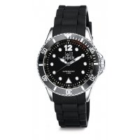 Artikel-Nr: 34270200-BEMetallgehäuse, Drehbare Lünette mit Aluminiumring, 3-Zeiger-Markenuhrwerk (PC21S), Fluoreszierende Zeiger, Farbiges Metallziffernblatt, Aufgeklebt, erhabener Index mit fluoreszierender Füllung, Aufgeklebt, erhabenes Logo, Flexibles Silikonarmban