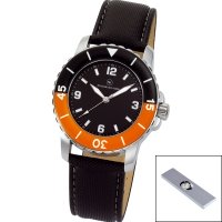 Artikel-Nr: 57321940SW-SWMetallgehäuse glänzend mit hochwertiger IP-Beschichtung, drehbare Lünette und Kronenschutz, wasserdicht 3 bar, sportliches, robustes Nylon-Armband mit Edelstahl-Dornschließe, gehärtetes Mineralglas, Zeiger und Stundenindex fluoreszierend, Markenuhrwerk von Miyota (by CITIZEN), 5 Jahre Garantie, Kartonverpackung inkl.