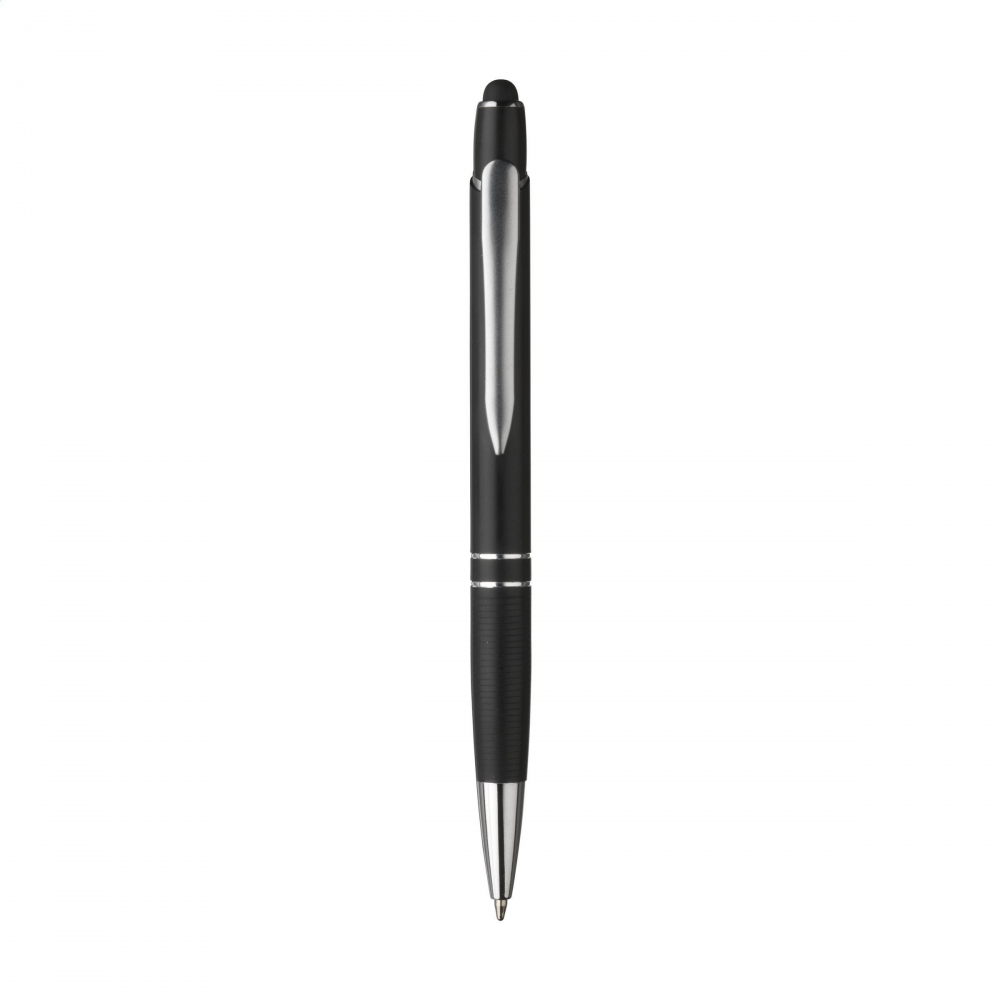 Artikel-Nr: CLP263140-001128Blauschreibender Aluminium-Kugelschreiber mit griffestem Vorderteil, silbernen Akzenten und metallenem Clip. Mit gummierte Spitze zum Bedienen von Touchscreens (wie iPhone/iPad).