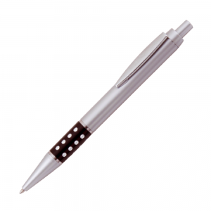 Artikel-Nr: PRM122199_15ARRAN Kunststoff-Kugelschreiber Peekay, mit Metallclip, Griffzone in farbigem Lochdesign, mit blauschreibender Plastikgroßraummine.