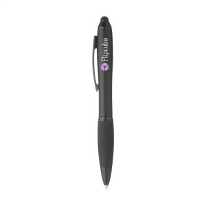Artikel-Nr: CLP244297Blauschreibender Kugelschreiber mit gummiertem, grifffesten Vorderteil, hochglänzenden Akzenten, Aussparungen im Metallclip, gummierter Spitze / Pointer zum Bedienen von Touchscreens (wie iPhone / iPad).