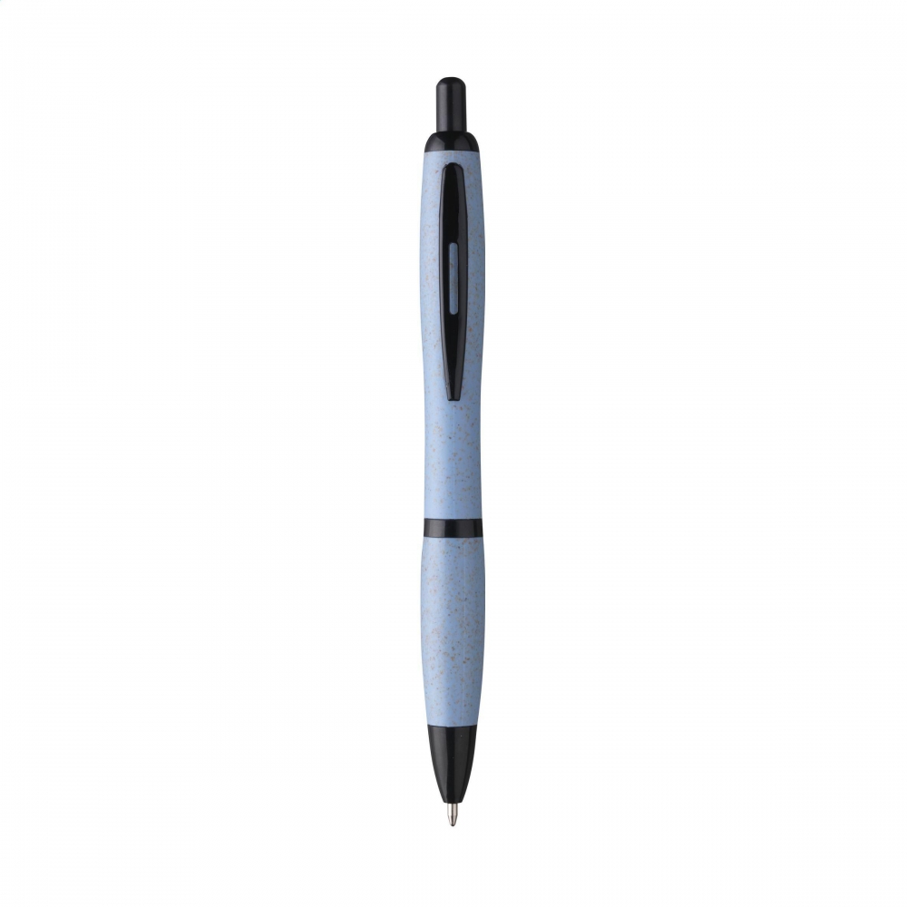 Artikel-Nr: CLP260882-005128Blauschreibender Kugelschreiber, hergestellt aus 50% PP und 50% Weizenstroh. Versehen mit schwarzen Akzenten und Metallclip. Teilweise biologisch abbaubar.
