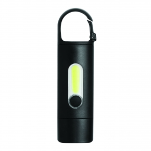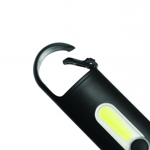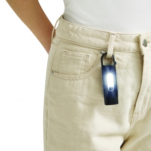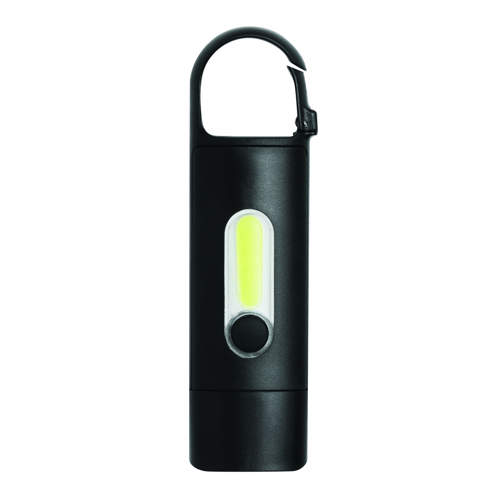 Artikel-Nr: INP56-0403176Aufladbare LED-Taschenlampe BRIGHT LIGHT: Front-LED mit 3 Leucht-Modi (100% und 75% Dauerlicht, Blinklicht), COB-Feld mit 10 lichtstarken weißen LED auf der Oberseite, gummierter An- und Ausschalter, mit Karabinerhaken zum Befestigen (der Karabiner ist NICHT als Sicherung beim Klettern geeignet), leistungsstarker Lithium-Akku, Kapazität: 200 mAh, inkl. USB-Ladekabel mit USB Typ C Stecker (Länge ca. 30 cm), in Box