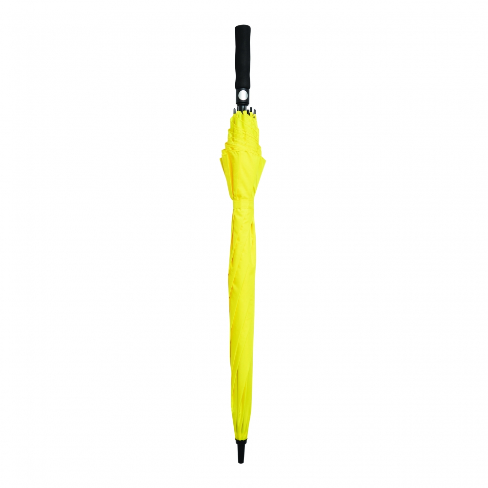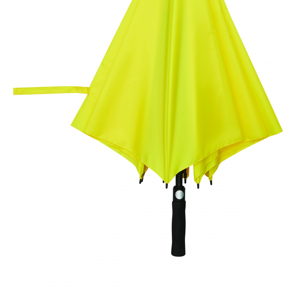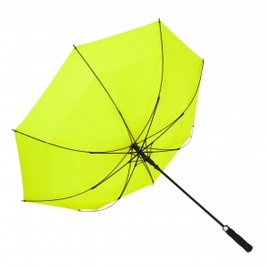 Artikel-Nr: INP56-0104505Automatik-Golfschirm ORA: Fiberglasstock, Fiberglasspeichen und Kunststofftips, EVA-Griff mit integrierter Automatik-Auslösetaste, Polyester-Pongee-Bespannung aus recycelten Kunststoffen / RPET, Schließband mit Klettverschluss