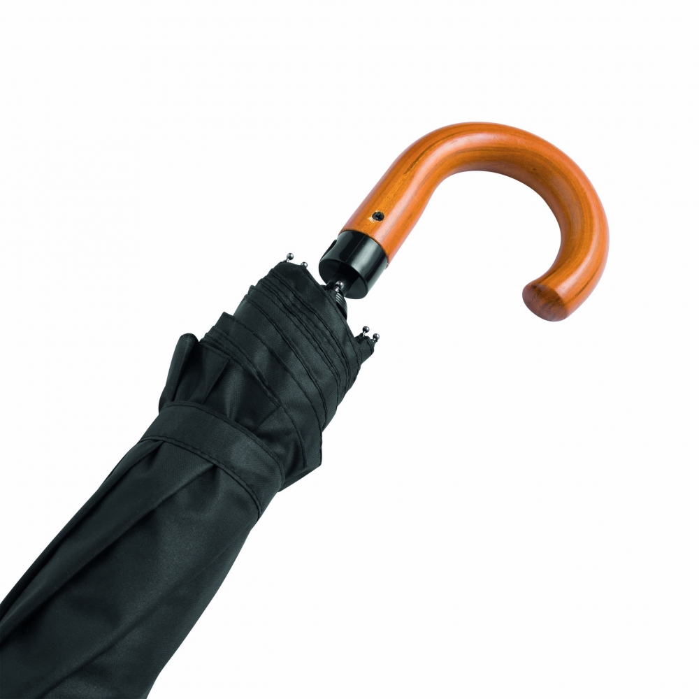 Artikel-Nr: INP56-0101191Automatik-Herrentaschenschirm LORD: 3-teiliger Metallstock, Metall- / Fiberglasspeichen, Holz-Rundhakengriff, Polyester-Pongee-Bespannung und -Hülle, mit stark wasserabweisender Spezialbeschichtung, Schließband mit Klettverschluss