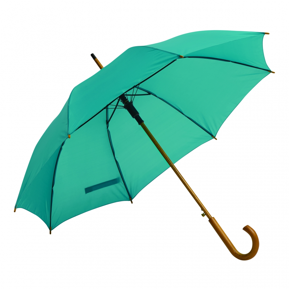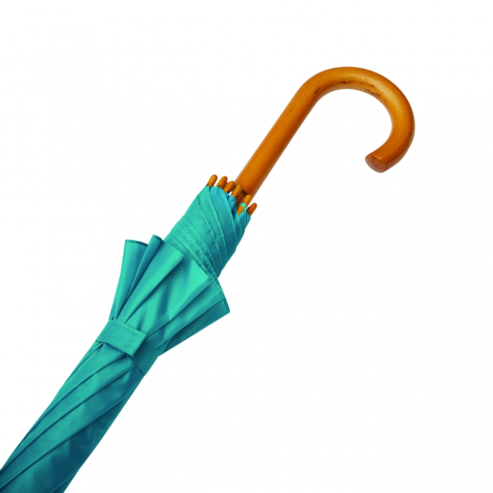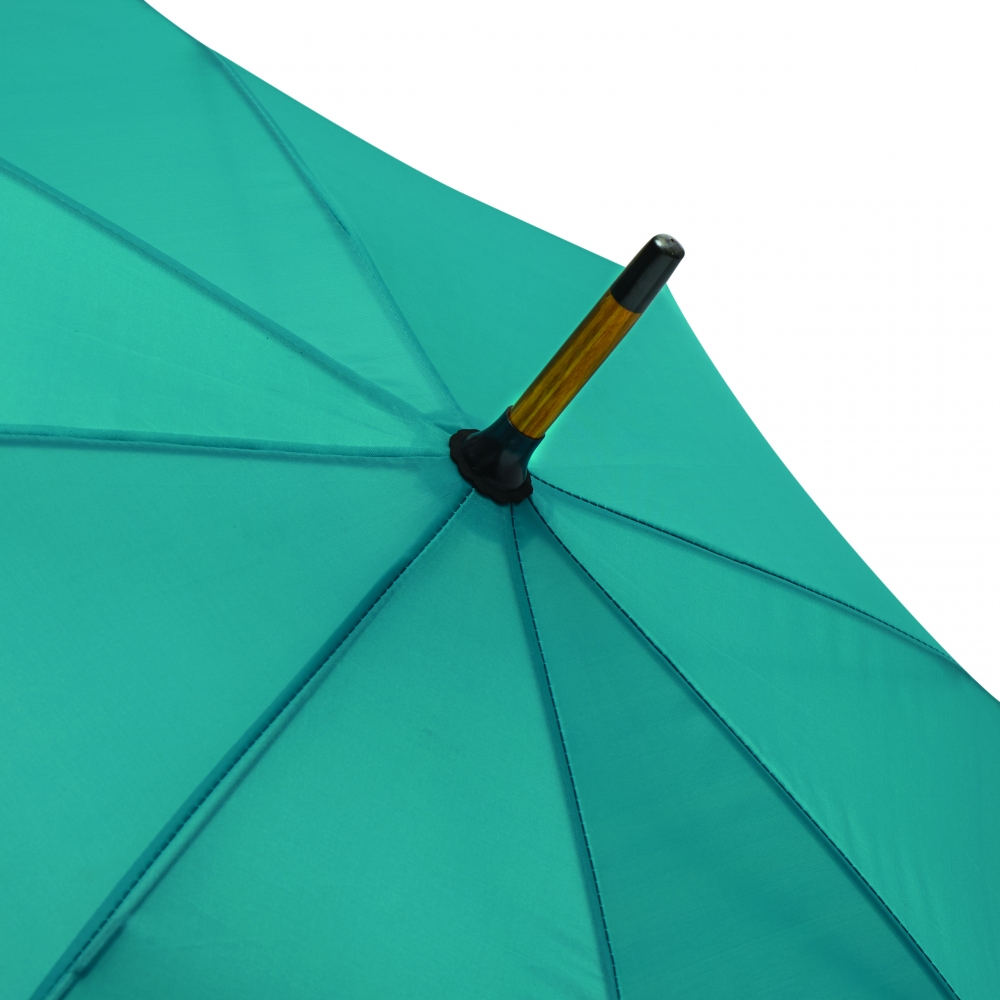 Artikel-Nr: INP56-0103517Automatik-Holzstockschirm JAZZ: Fiberglasspeichen, Holztips und -Rundhakengriff, Polyester-Bespannung aus recycelten Kunststoffen / RPET, Schließband mit Klettverschluss