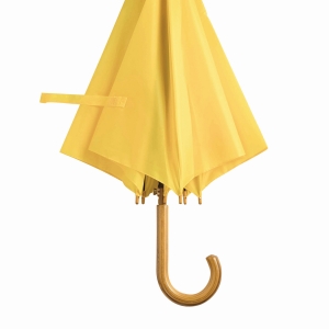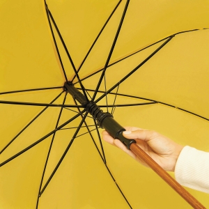 Artikel-Nr: INP56-0103135Automatik-Holzstockschirm TANGO: Metallspeichen, Holztips und -Rundhakengriff, Polyester-Bespannung, Schließband mit Klettverschluss