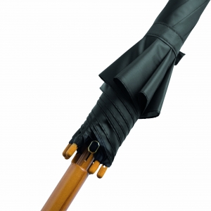 Artikel-Nr: INP56-0103133Automatik-Holzstockschirm TANGO: Metallspeichen, Holztips und -Rundhakengriff, Polyester-Bespannung, Schließband mit Klettverschluss