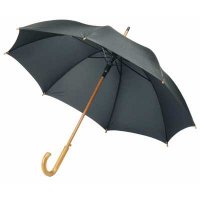 Stockschirm mit Holzkrücke, Metallgestell, Nylonbespannung, Ø 102 cm, Stocklänge 89 cm. Maße ca. Speichenlänge 60 cm Farbe: schwarz