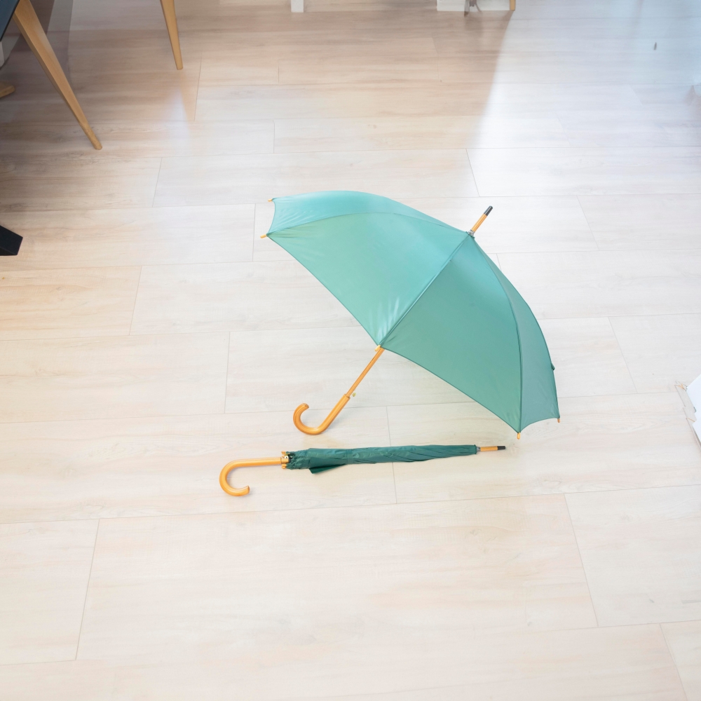 Artikel-Nr: GIV4070017Automatik-Stockschirm aus Polyester (190T), mit Holzkrücke, Tips und Schaft aus Holz und Metallgestänge.