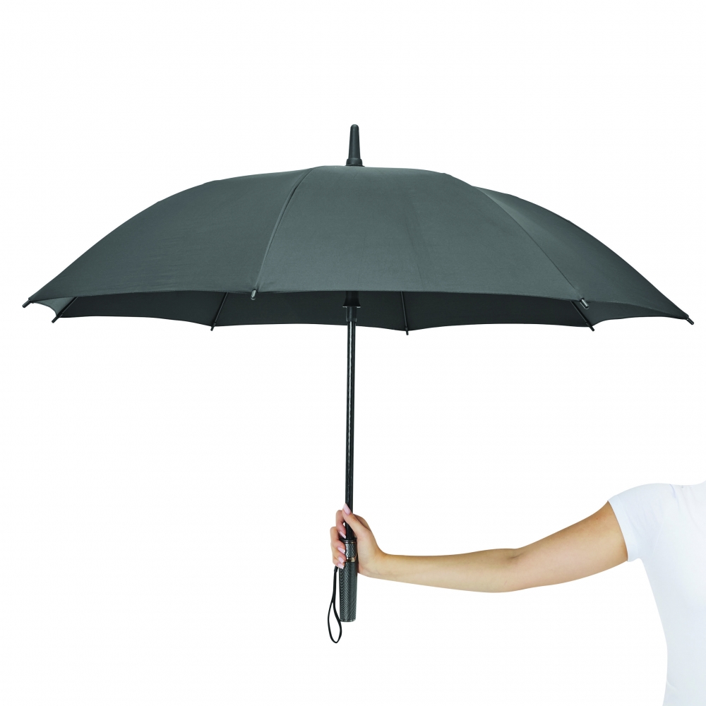 Artikel-Nr: INP56-0103432Automatik-Stockschirm BLIZZARD: Fiberglasstock, Fiberglasspeichen und Kunststofftips, Kunststoff-Griff in Carbon-Optik mit integrierter Automatik-Auslösetaste und Handschlaufe, hochwertige Polyester-Pongee-Bespannung, Schließband mit Druckknopf