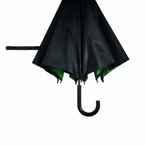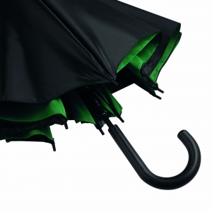 Artikel-Nr: INP56-0103071Automatik-Stockschirm DOUBLY: Metallstock und -speichen, Kunststofftips und -Rundhakengriff, doppelt bespanntes und zweifarbiges Schirmdach, Polyester-Bespannung, Schließband mit Klettverschluss