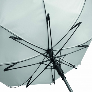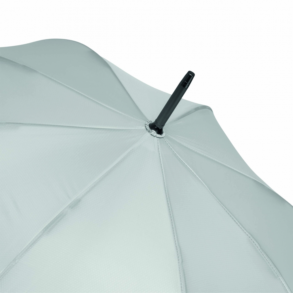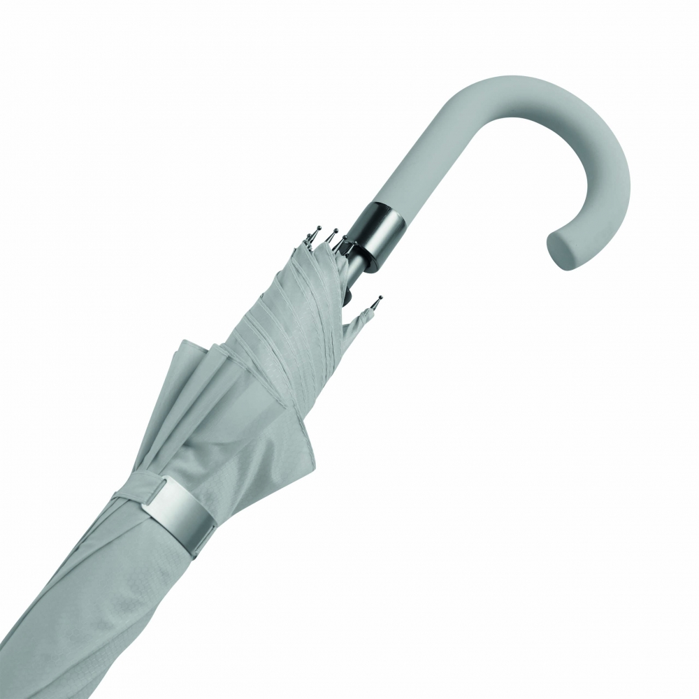 Artikel-Nr: INP56-0103345Automatischer Windproof-Stockschirm JUBILEE: Aluminiumstock, Fiberglasspeichen, Metalltips, gummierter und farblich abgestimmter Rundhakengriff, Polyester-Bespannung und -Hülle mit Wabenstruktur, Verschlussband mit Druckknopf und Metall-Platte zur Werbeanbringung
