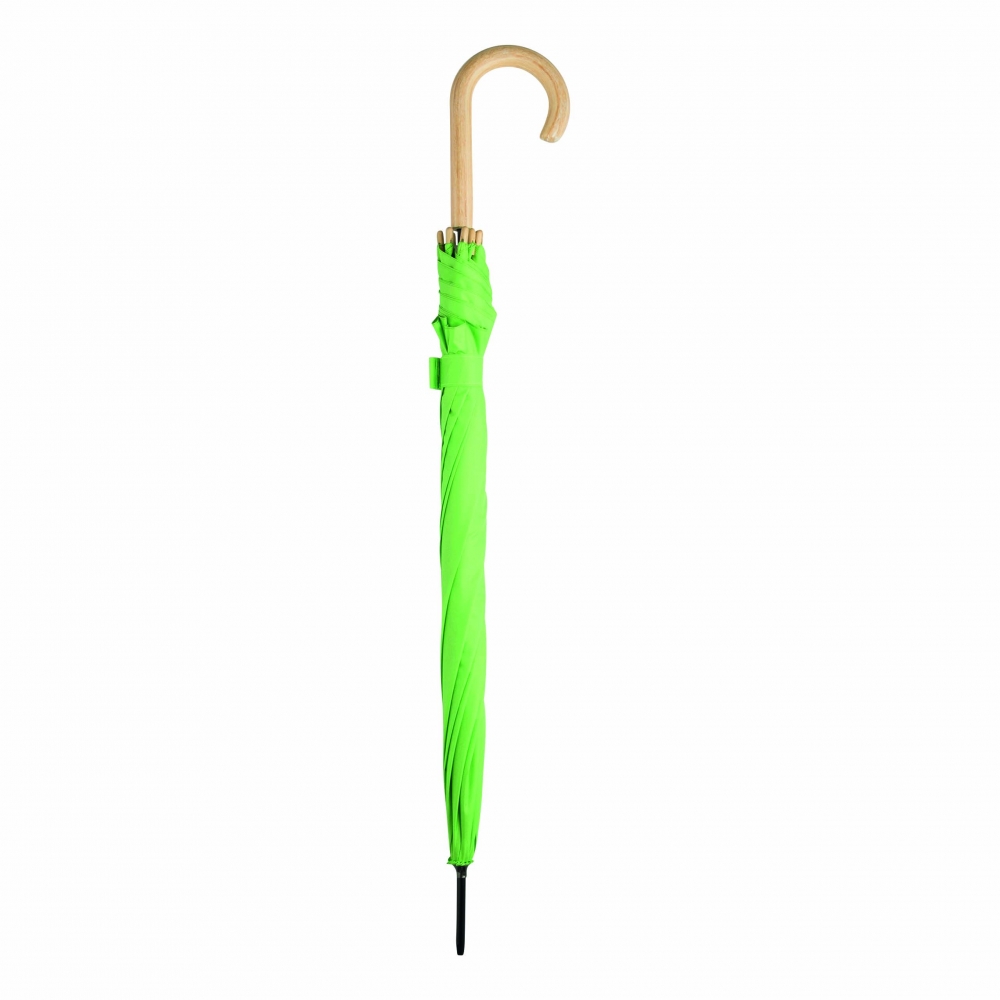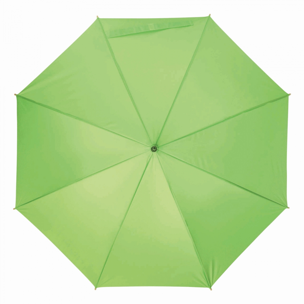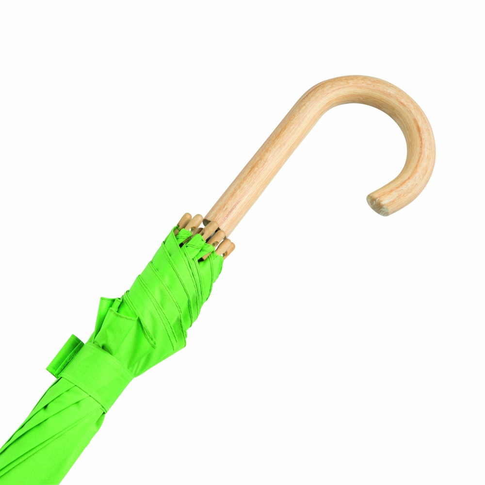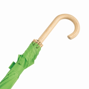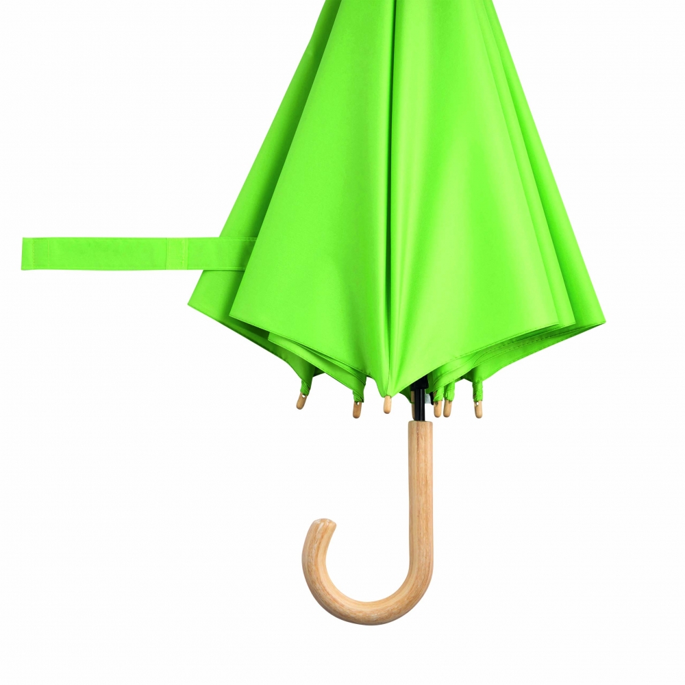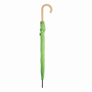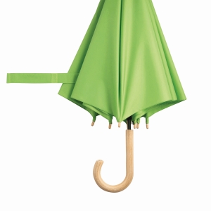 Artikel-Nr: INP56-0103505Automatik-Stockschirm LIPSI: Metallstock, Fiberglasspeichen, Holztips und -Rundhakengriff, Polyester-Pongee-Bespannung aus recycelten Kunststoffen / RPET, Schließband mit Klettverschluss