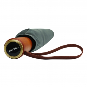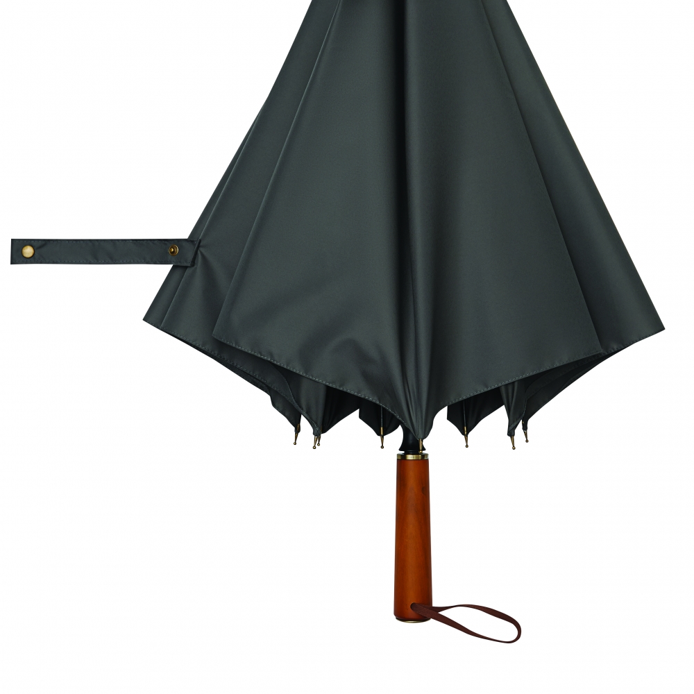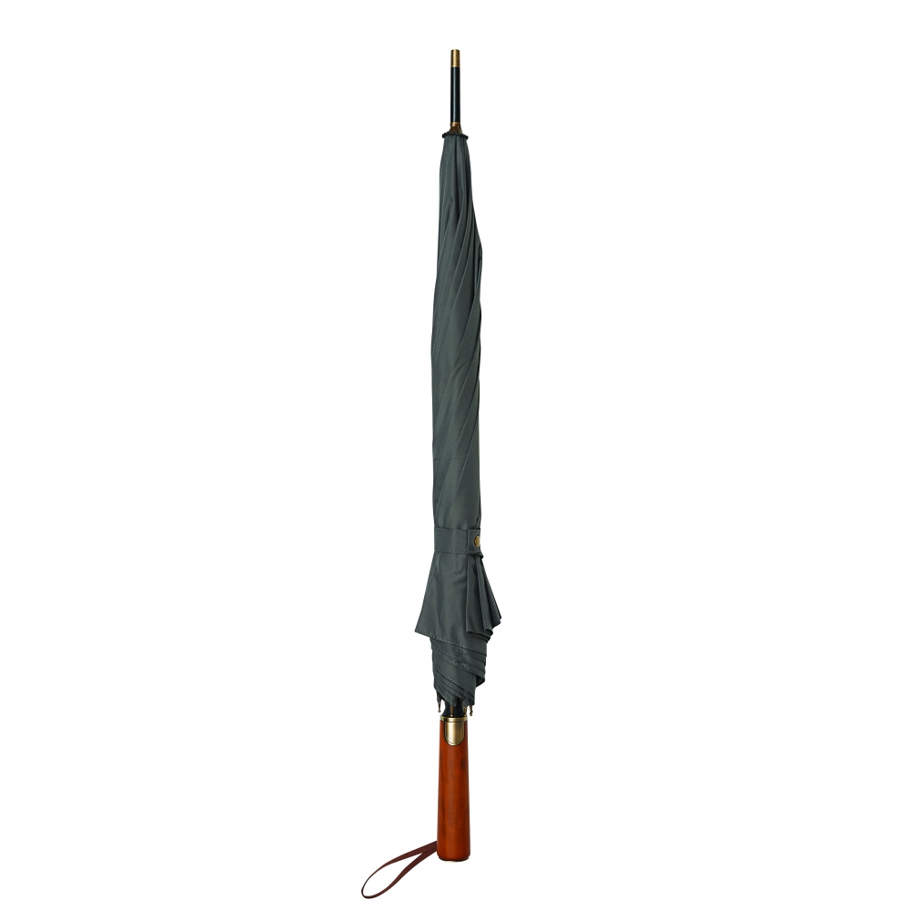Artikel-Nr: INP56-0103422Automatik-Stockschirm POLKA: schwarzer Metallstock, Fiberglasspeichen und Metalltips, gerader Holzgriff mit messingfarbener Automatik-Auslösetaste, Griff mit "CREADO"-Doming, hochwertige Polyester-Pongee-Bespannung und -Hülle, Schließband mit Druckknopf