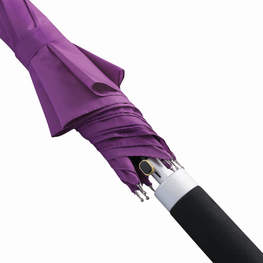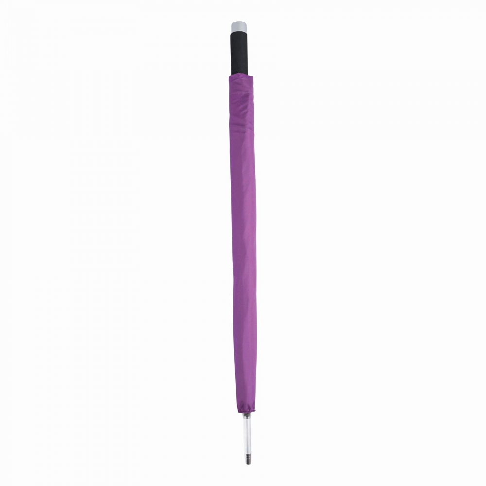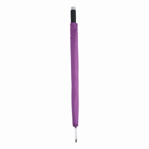 Artikel-Nr: INP56-0103296Automatik-Stockschirm RUMBA: Aluminiumstock, Fiberglasspeichen und Metalltips, Aluminium-EVA-Griff, Polyester-Pongee-Bespannung und -Hülle, Schließband mit Klettverschluss